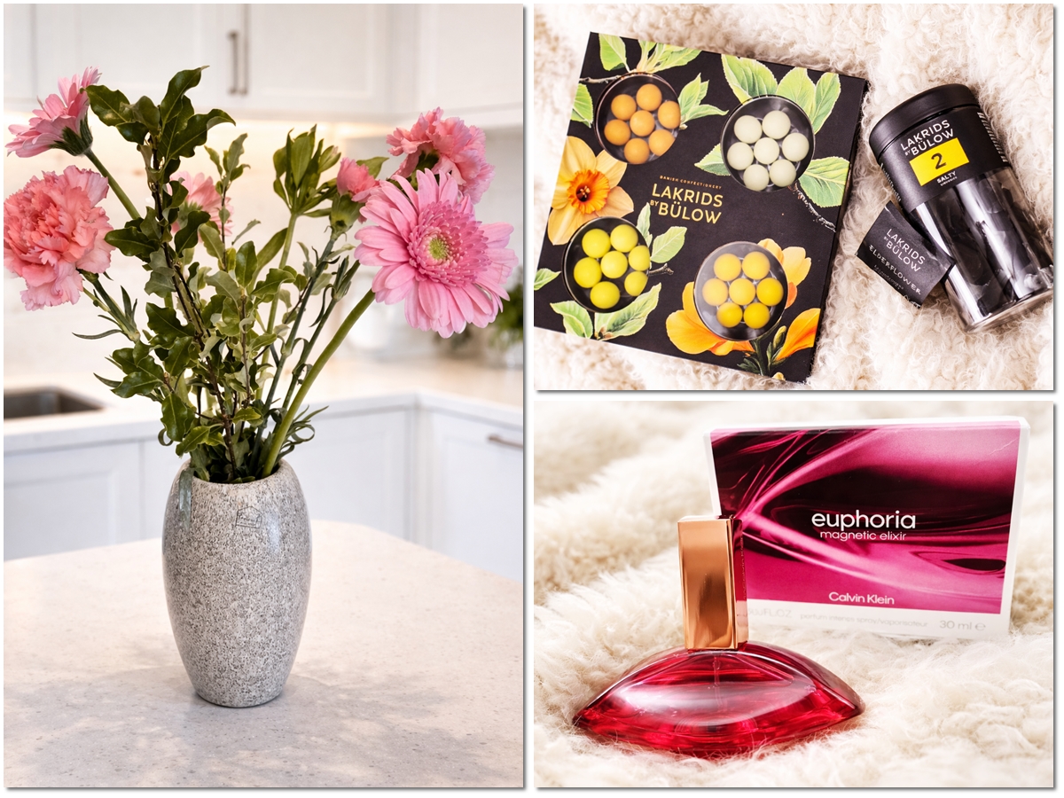 Av BQ och Izzy fick jag blommor, gott lakritsgodis från ➜ LAKRIDS BY BÜLOW . Otroligt god lakrits, som man får äta med andakt och en bit då och då bara, annars blir det lite väl lyxigt. Samt en parfym som jag luktat på som luktar himmelskt gott. Det hade BQ snappat upp att jag sagt och köpte den åt mig. Den heter ➜ Euphoria magnetic elixir – Calvin Clein