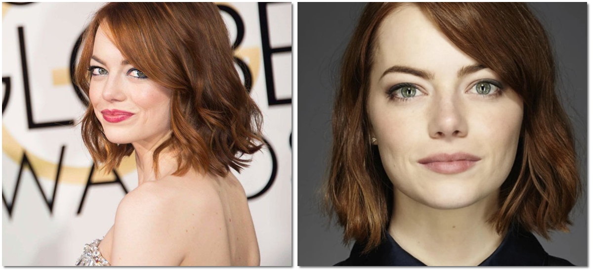 Jag valde denna bild nedan som inspiration på färg och längd, visst var det likt. Det var t.o.m så Izzy sa, men MAMMA det ser ut ut som dig! Det är skådespelaren ➜ Emma Stone. Att jag ser ut som henne det vet jag inte, men ser drag och likheter. Lite samma hudton, ansiktsform, kindben och som Izzy sa ÖGONEN mamma!