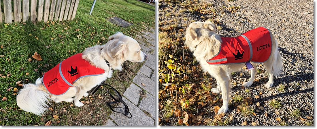 Härligt med helg nu och att vi kommer mer och mer mot riktig höst med krispig luft och stundande vinter. Älskar dem båda faktiskt, så härligt. I helgen är vi hundvakt åt bästa Lotta, hon är ju så härlig och söt. Hon har fått en ny reflexväst och med den på är hon ju om det ens går ännu sötare. Vi har nyss varit ut på en långpromenad och ska snart äta middag innan vi landar för Idolkväll. Det är veckans höjdpunkt om du frågar Izzy.